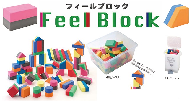 フィール(FEEL)には「さわる」「感じる」という意味があり、幼児の手になじみやすく、感性を高めるブロックをイメージした製品です。